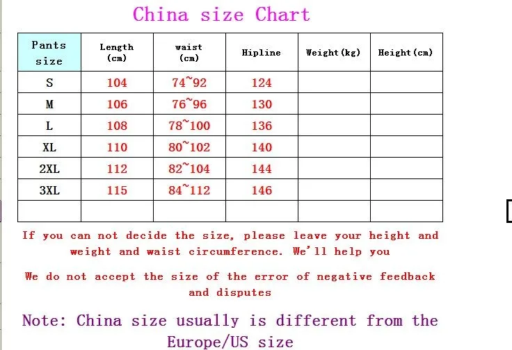 Note: It's China Size, It's Usually Different Europe and United States size