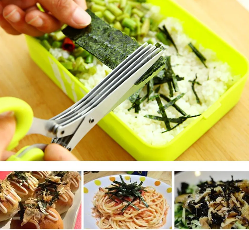Kitchen Scissors 5 Multilayers Stainless Steel for Cutting Green Onion Sushi Shredded Scallion Cut Herb Cooking Spices