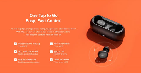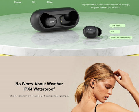 QCY T1C TWS Wireless Earphone Bluetooth V5.0 IPX4 Waterproof Headphones with Microphone Portable Sports Headset