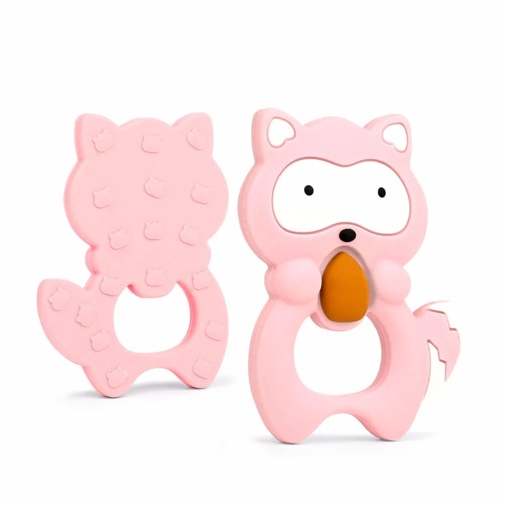 TYRY.HU Silicone Raccoon Teether Silicone Teething Beads Rubber Teething Ring Babies Beads Carrier Baby Safety Holder Accessory