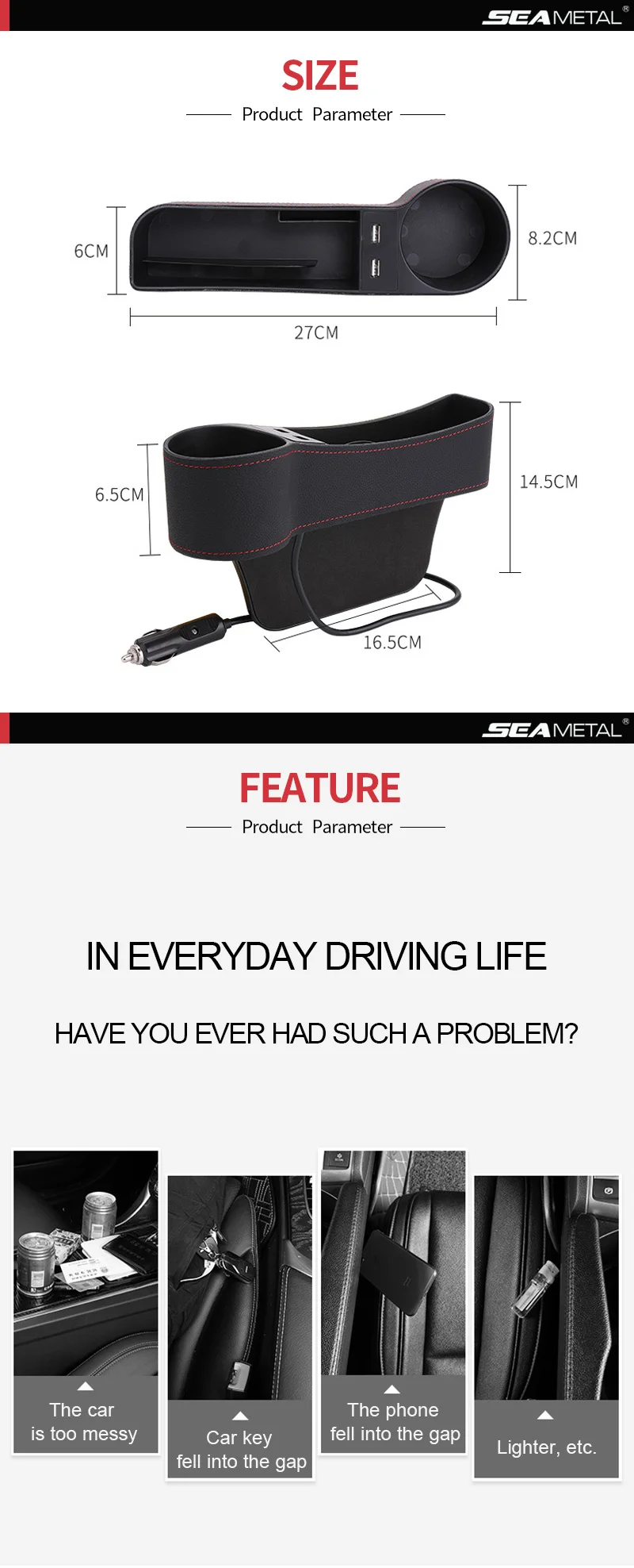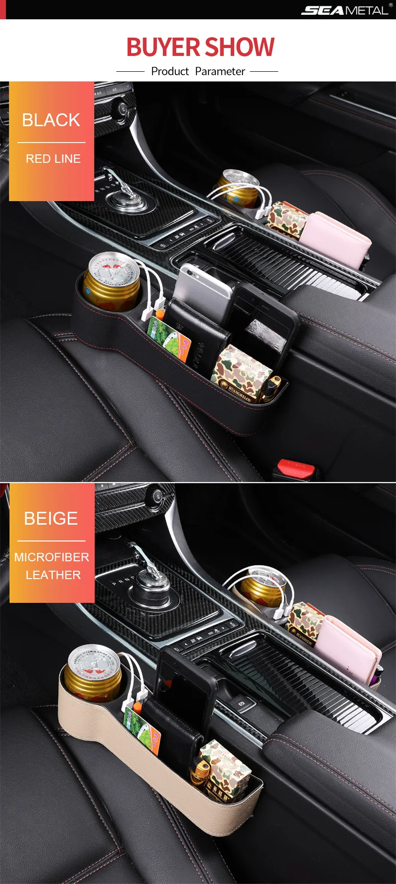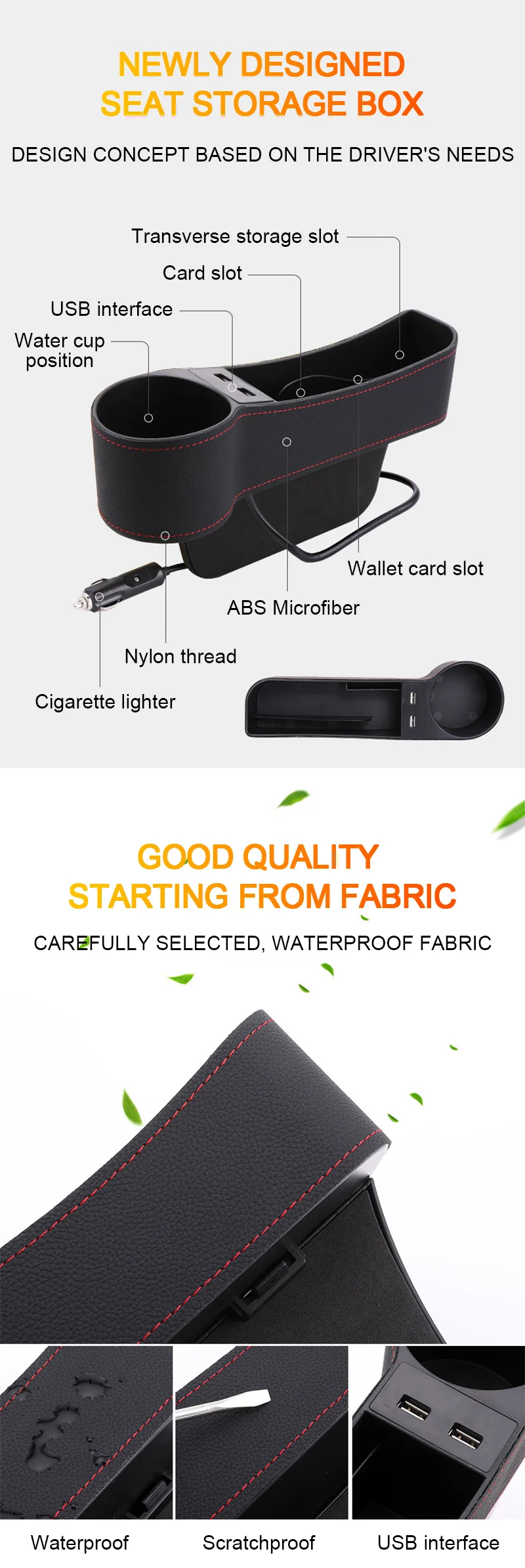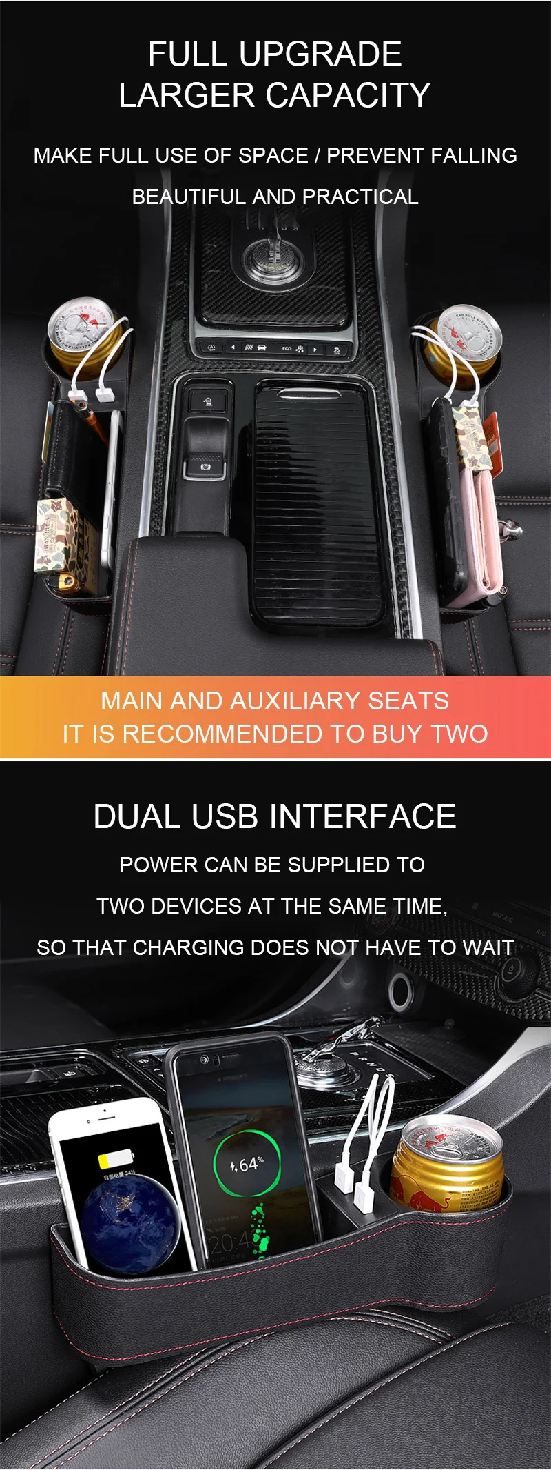 Car Organizer Storage Box Universal Car Seat Gap Organizer Multifunctional with Dual USB Charging Cup Holder Leather Storage Box