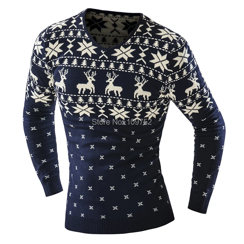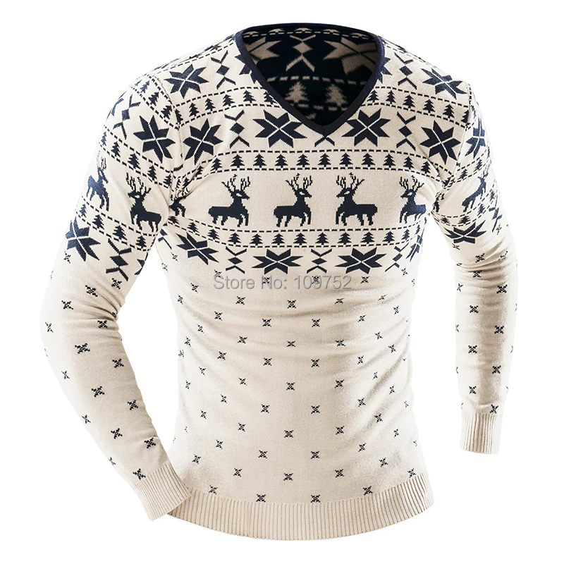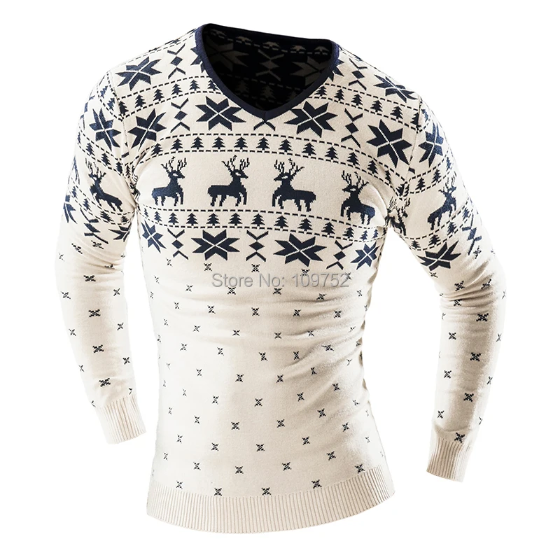 2016 Autumn Winter Pullover Men Christmas Sweater Jumper V Neck Deer Pattern Slim Fit Knitted Christmas Sweaters Knitwear