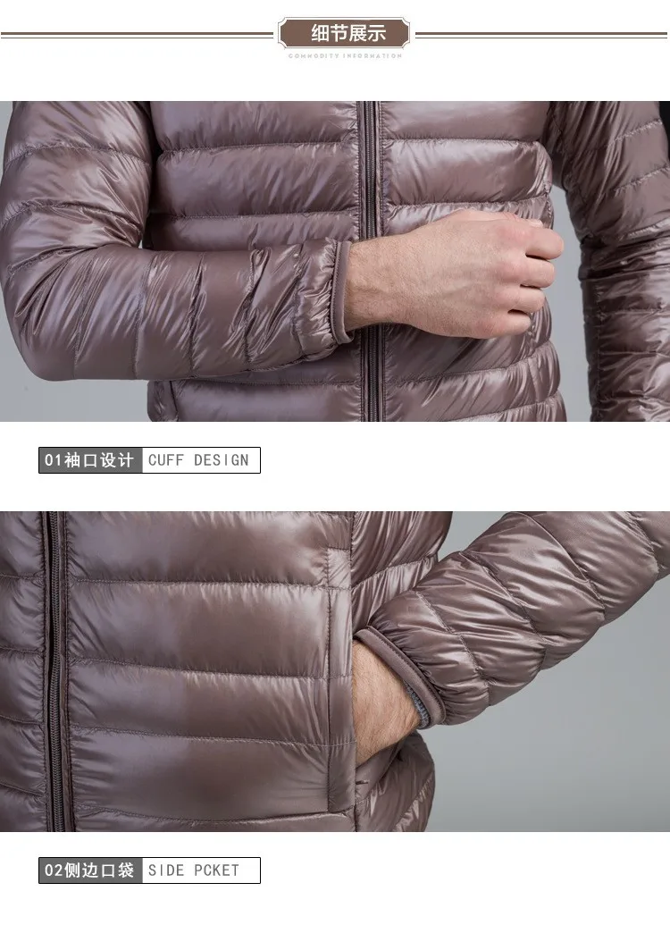 Gender: Men;Style: Fashion;Model Number: A363;Lining Material: Spandex;Closure Type: Zipper;Filling: White duck down;Fabric Type: Broadcloth;Clothing …