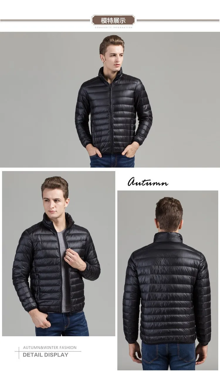 2016 Autumn Winter White Duck Down Jacket Ultra Light Thicken Plus Size Men's jacket for men Fashion Mens Outerwear Coat A363