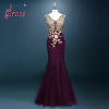 2016 Elegant Mermaid Evening Dress Gold Appliques Long Red Formal Gown Lace Prom Dresses vestido de festa