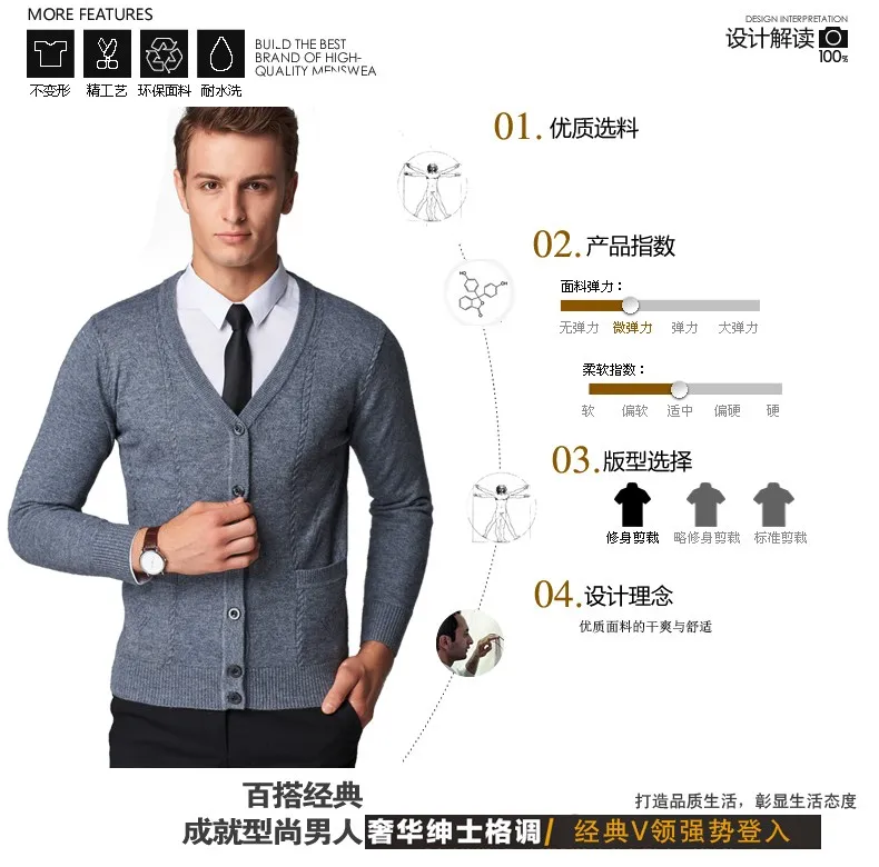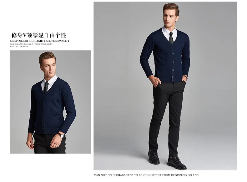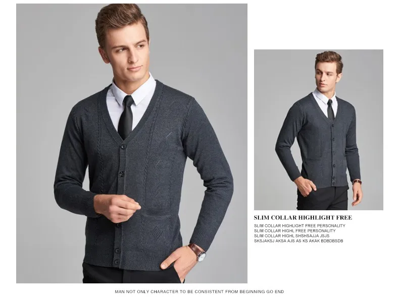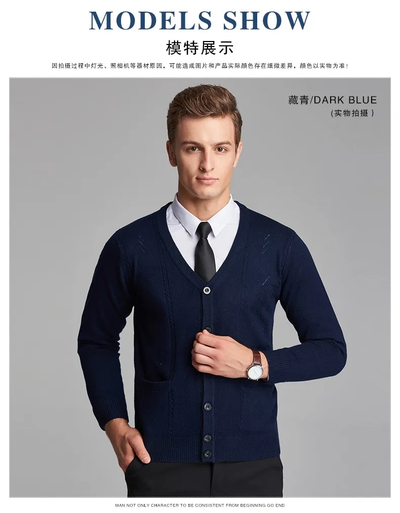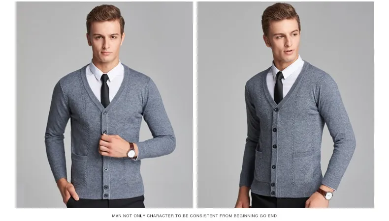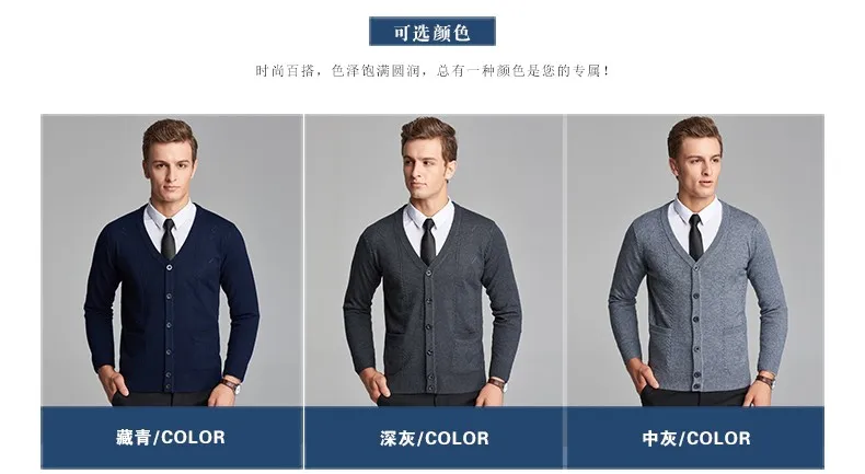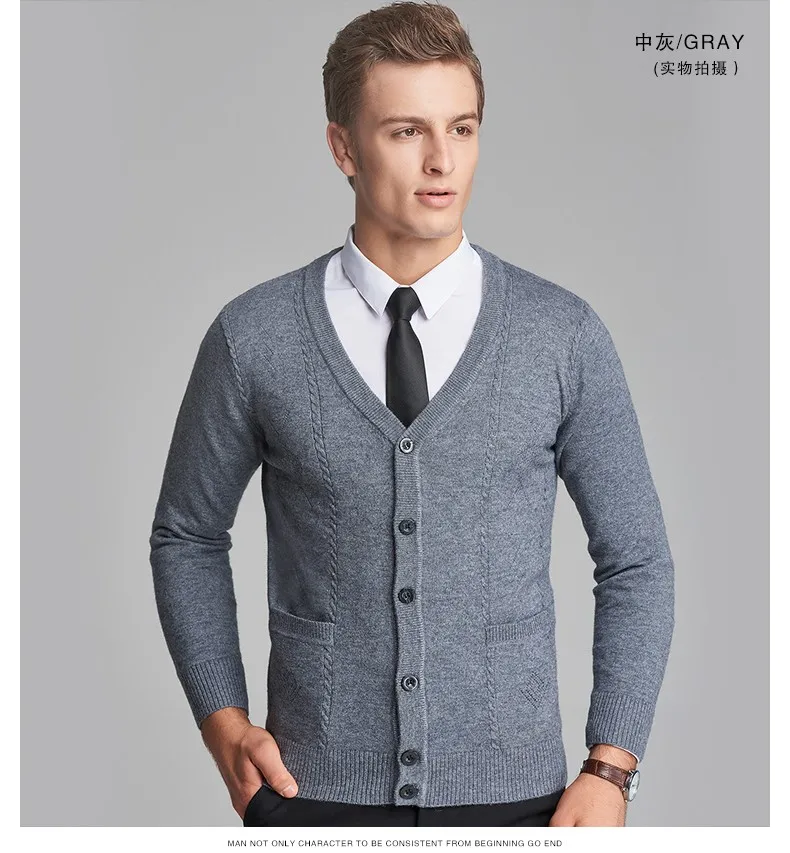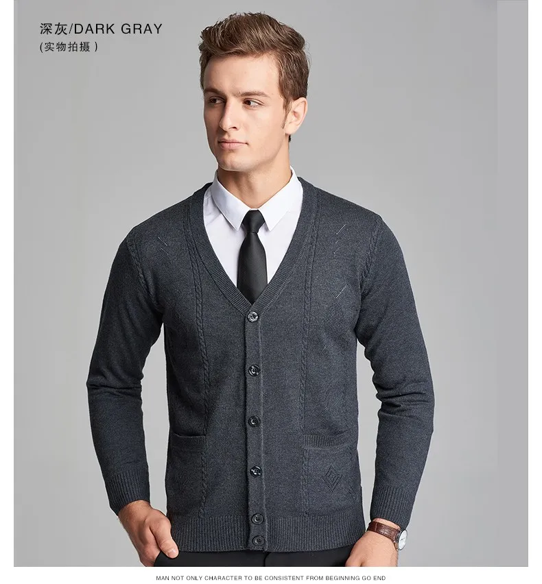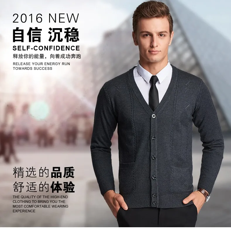2016 New Autumn Wool V neck Long Sleeve Jacquard Knitting Pattern Mens Cardigan Sweater