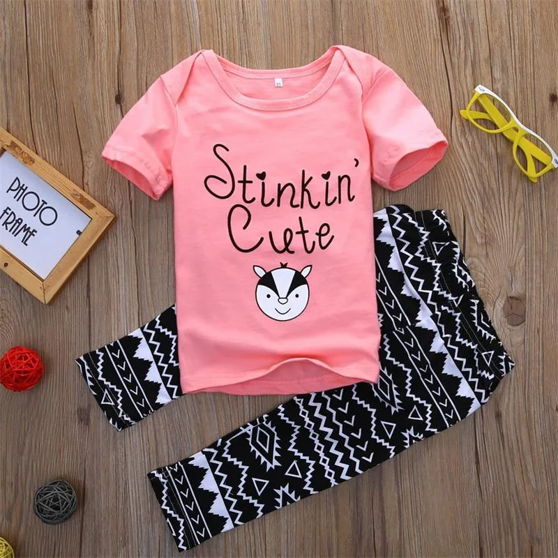 2016 New Fashion baby Girl clothes set 2pcs Newborn Infant Baby Kids Girls T-shirt Tops+Long Pants Outfits Clothes Sets
