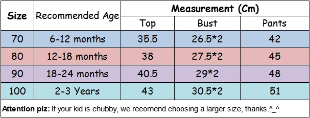 Attention plz: If your kid is chubby, we recomend choosing a larger size, thanks.