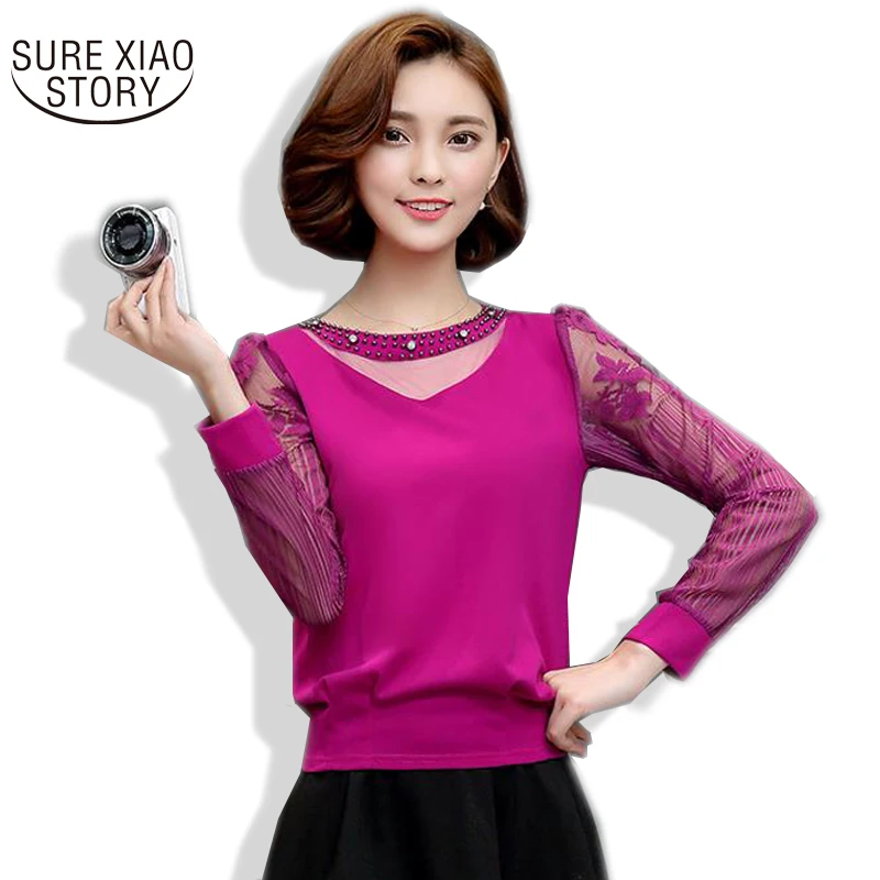 Gender: Women;Brand Name: SURE XIAO STORY;Sleeve Length(cm): Full;Material: Spandex,Polyester;Collar: V-Neck;Style: Formal;Fabric Type: Chiffon;Decora…