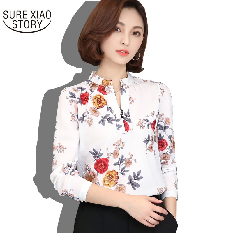 2016 New Fashion printed V- neck shirt plus size women Chiffon Blouse Shirt Female Work Office Tops Blusas 882G