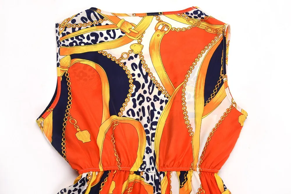 2016 summer autumn Korean Women casual Bohemian floral leopard sleeveless vest printed beach chiffon dress vestidos LYQ56-An-E