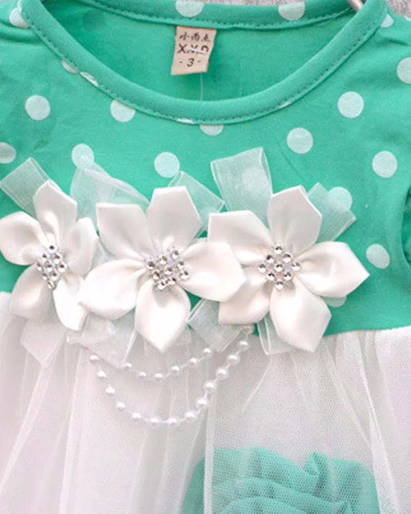 Baby Kids Girls Floral Dot Print Crew Neck Dress Summer Short-Sleeve Tutu Dress