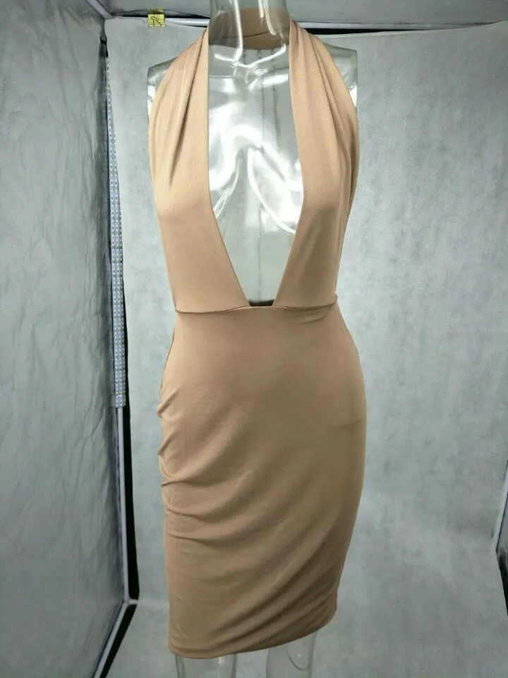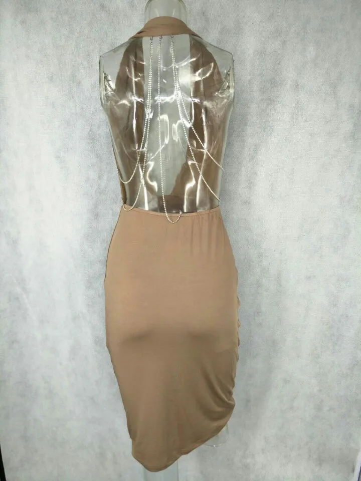 2016 Summer women sexy blackless dresses Halter neck Brown dress Cotton Bandage Bodycon Club Dresses Chain Vestidos De Festa