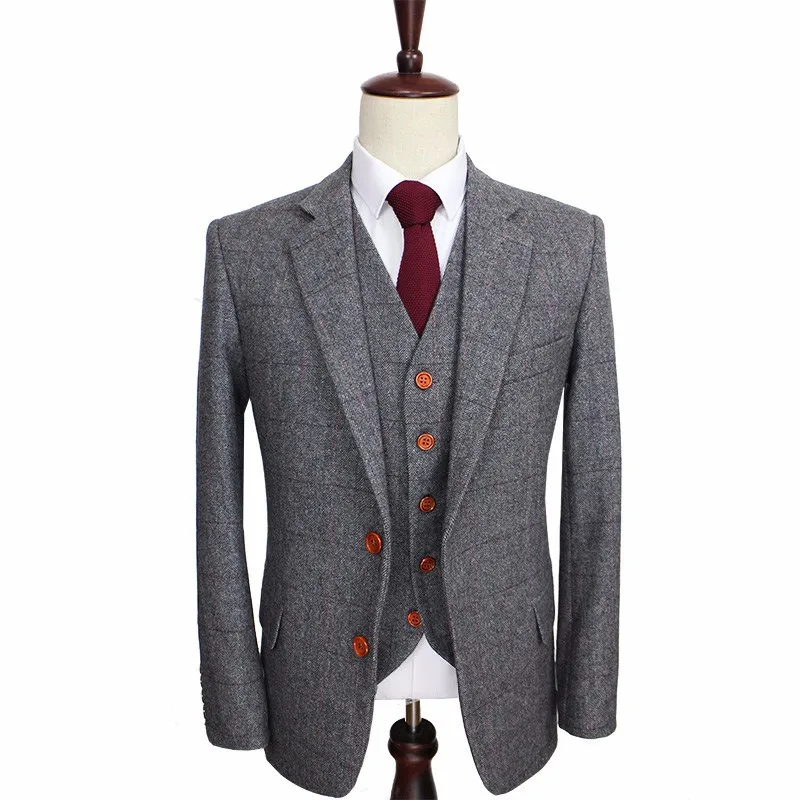 Tailor made men\'s suit store Retro gentleman style Grey Classic Tweed tailor wedding suits for men custom made Wool Slim Fit blazer mens 3 piece su…