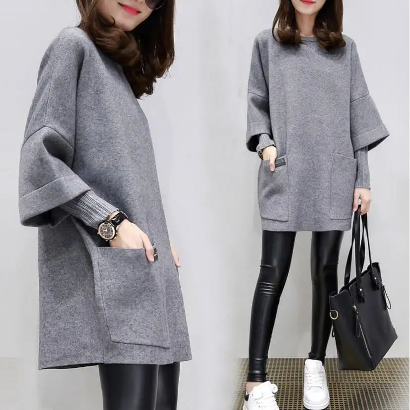 Gender: Women;Item Type: Hoodies,Sweatshirts;Brand Name: Mikialong;Sleeve Length(cm): Full;Pattern Type: Solid;Collar: O-Neck;Clothing Length: Long;Sl…