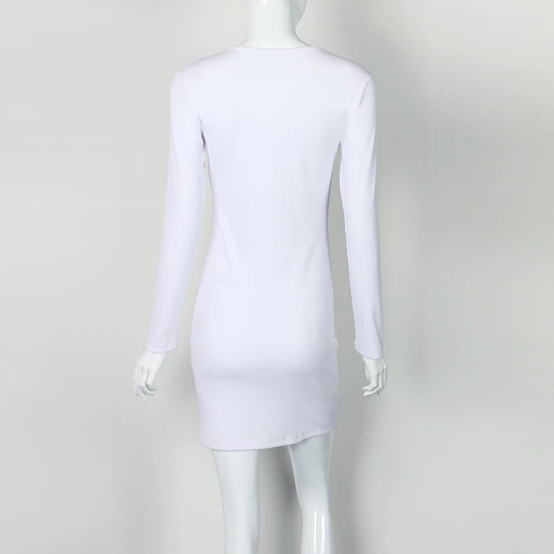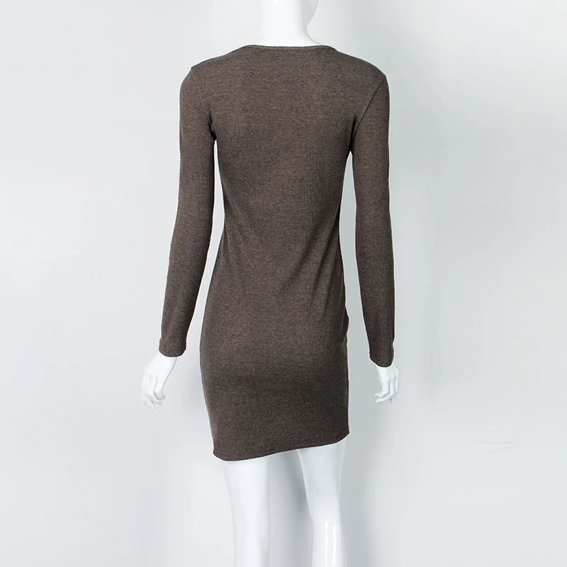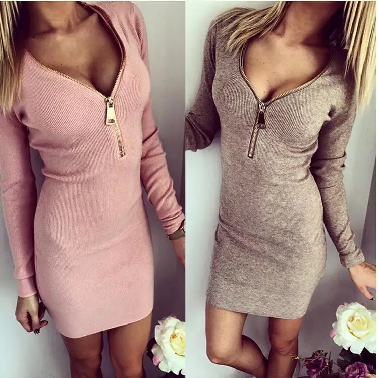2017 Autumn Winter Women Mini Dresses Sexy Stretch Zipper Bodycon Dress Sexy Long Sleeve V-neck Knit Dress Party Vestidos Mujer