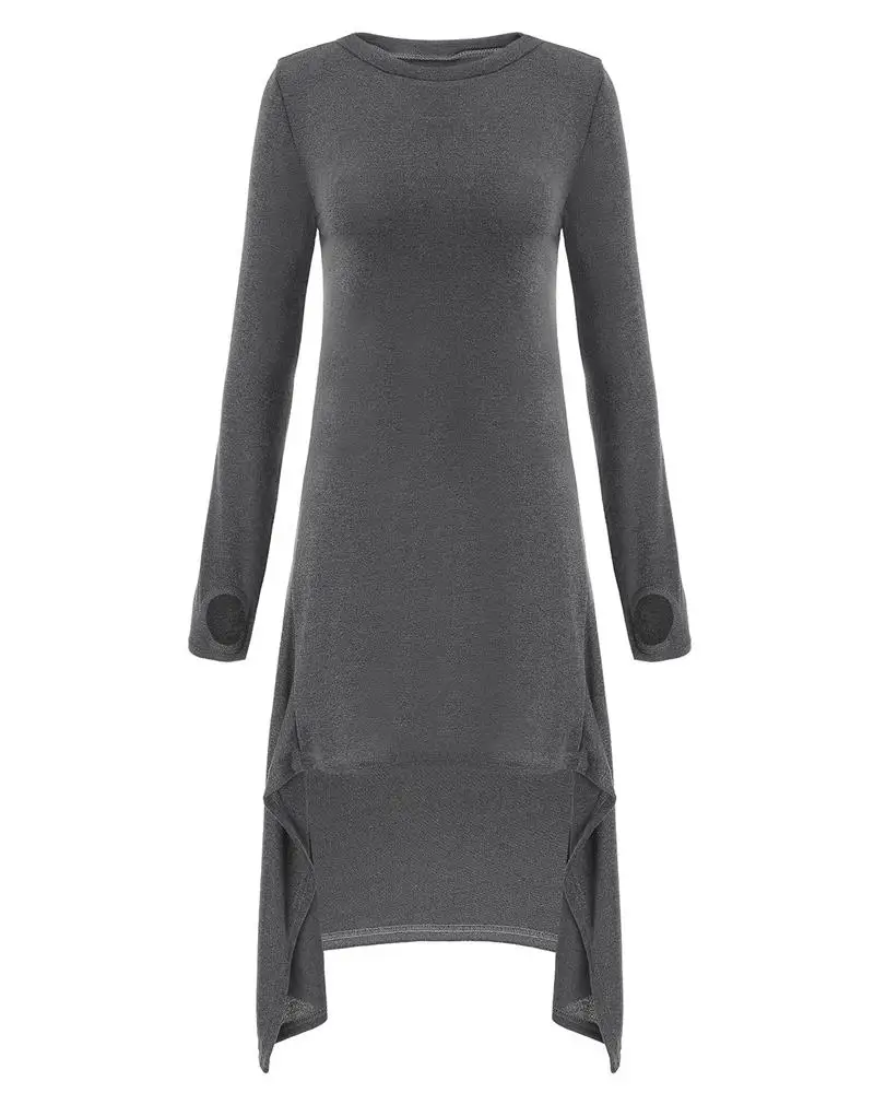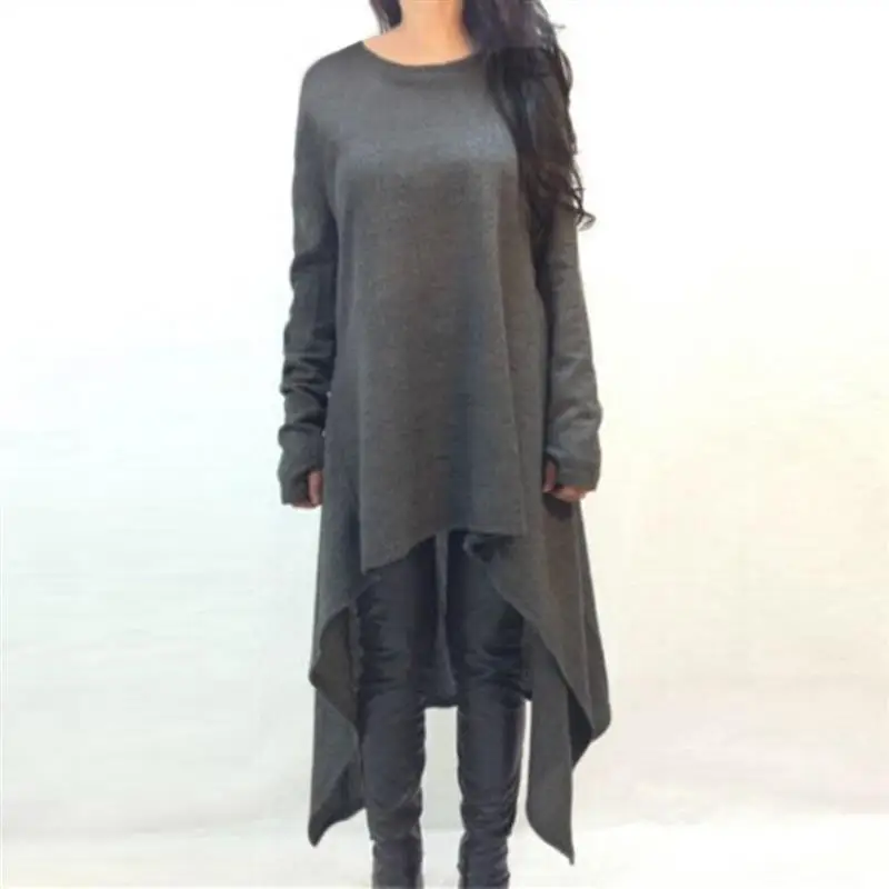 2017 Autumn Women Casual Loose Dress Long Sleeve O neck Knitted Sweater Vestidos Irregular Hem Mid-calf Dresses Plus Size S-3XL