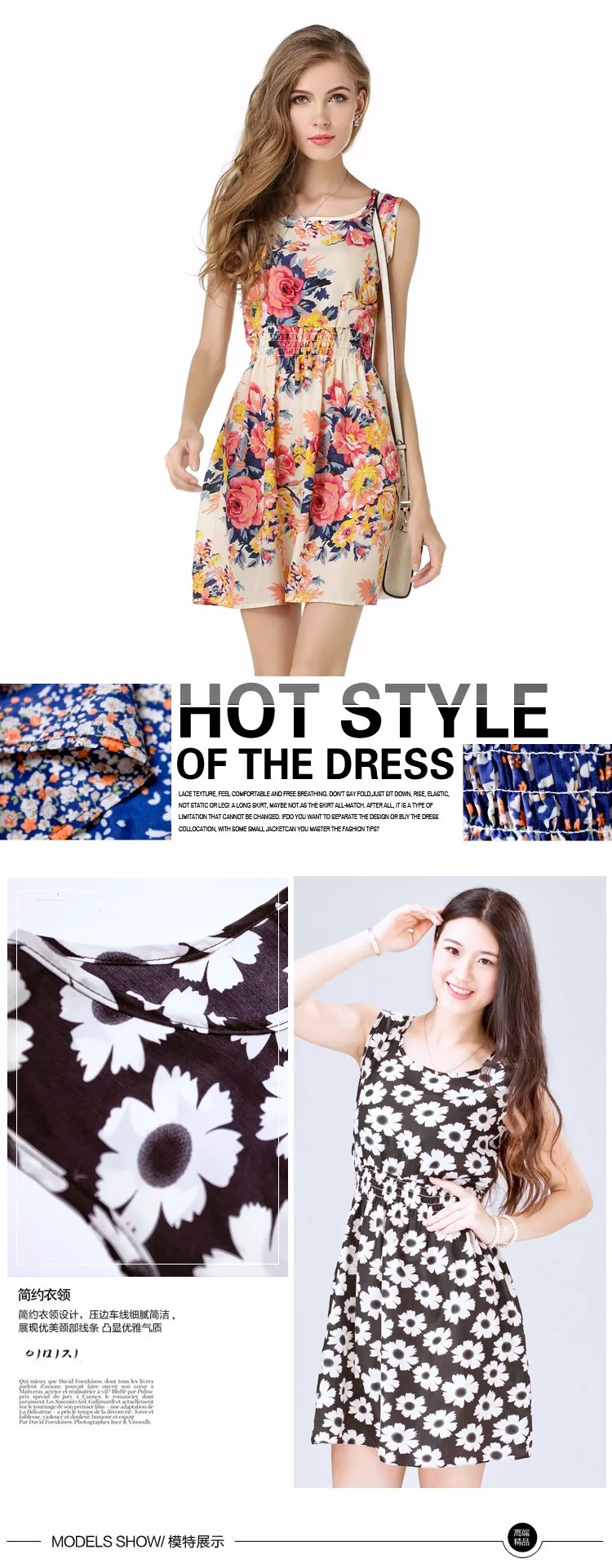 2017 Brand Fashion Women Dress Flower Print Plus Big Size Casual Clothing Ladies Summer Style Beach Vestidos Festa Mini Dress