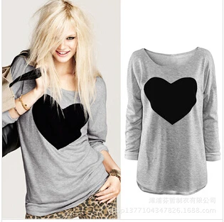 Heart-shaped pattern printed gray long-sleeved round neck Pullovers for Women Sweatshirts bottoming shirt A583