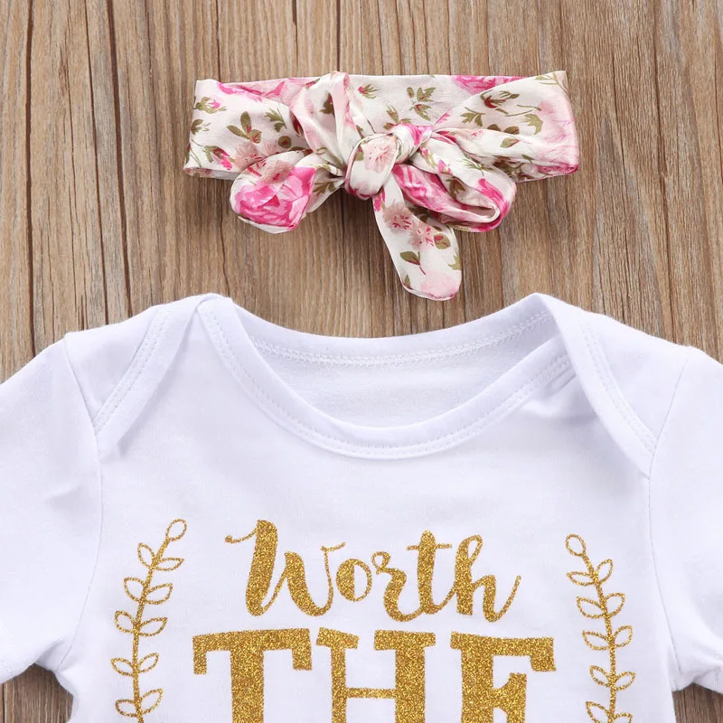 2017 Cute 3Pcs Newborn Baby Girl floral Clothes set Cotton Romper Pants Headband Outfits Bebe Clothing Set 0-24M