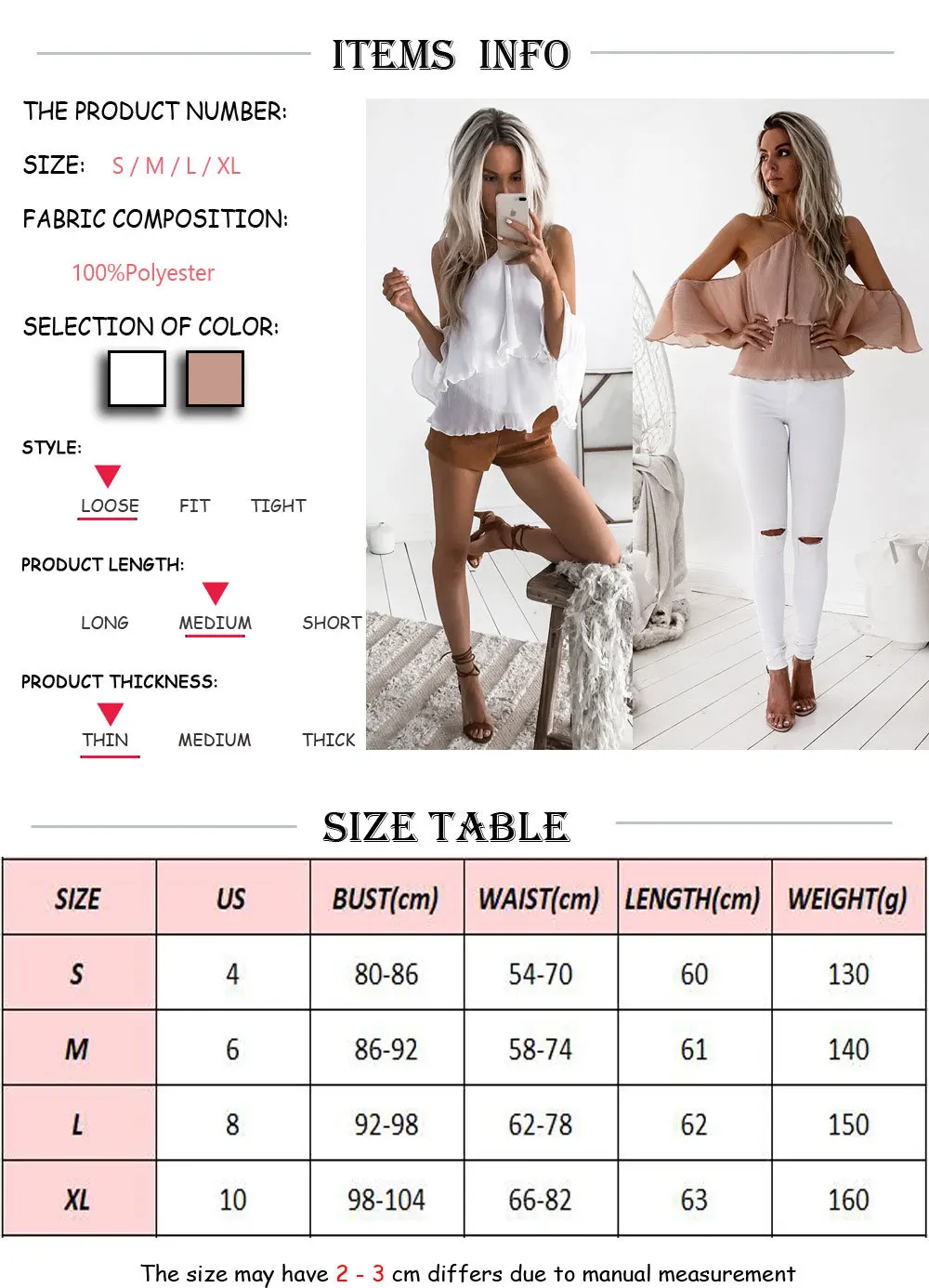 please check the measurement chart carefully before you buy the item.