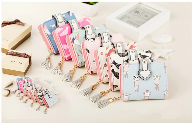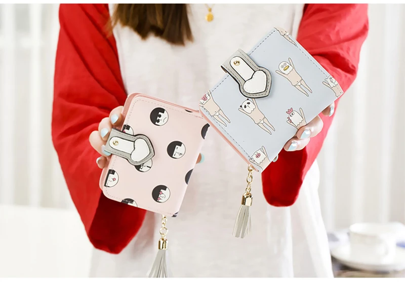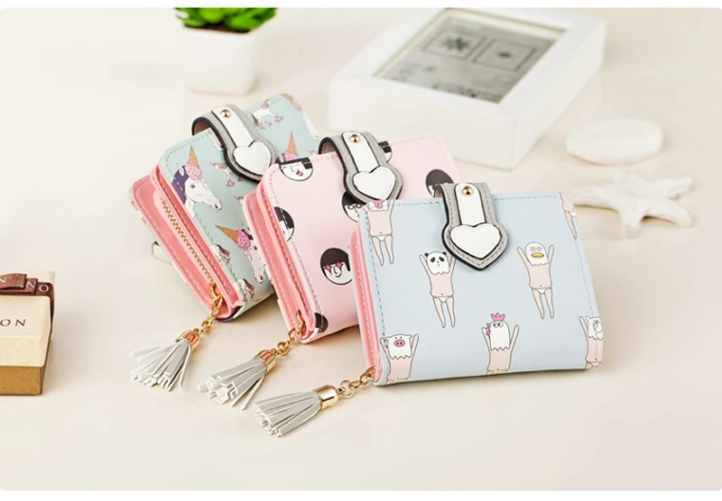 2017 Korean Cute Anime Cat Leather Trifold Hasp Mini Wallet Women Small Clutch Female Purse Brand Coin Card Holder Dollar Price