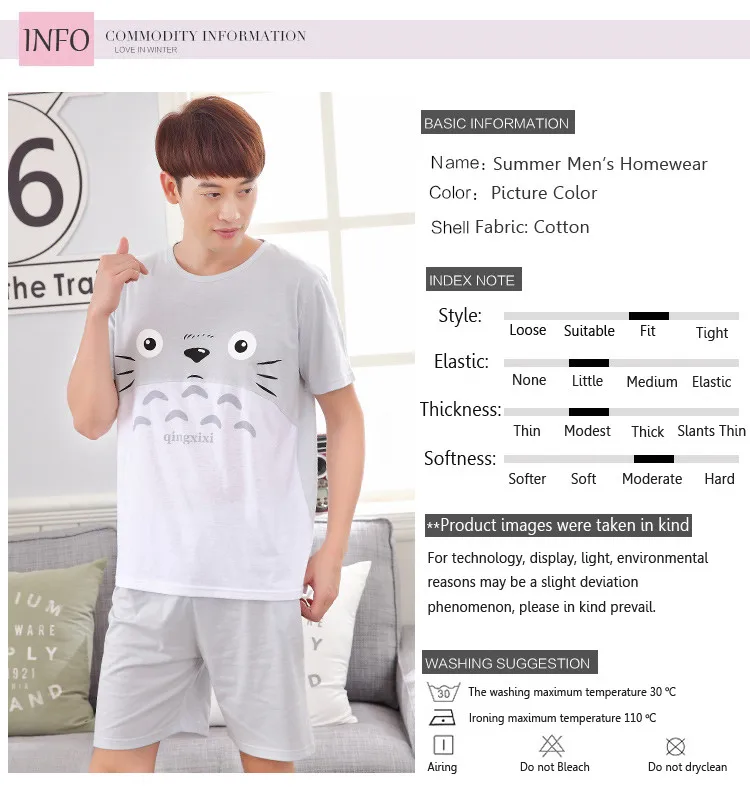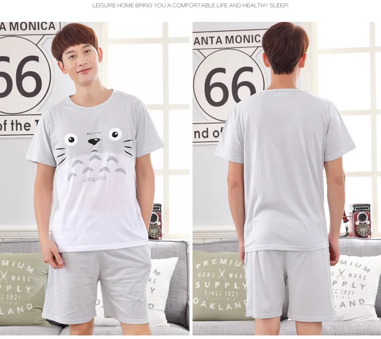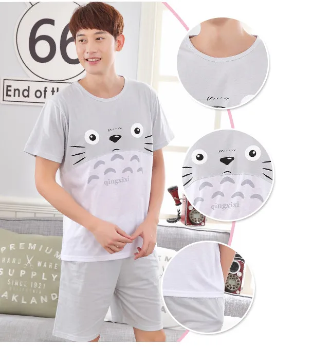 2017 - Men's Grey Totoro pattern short sleeves short pants suit Home wear