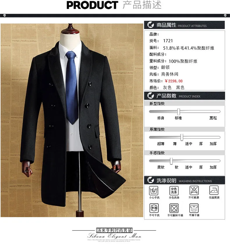 Outerwear Type: Wool & Blends;Gender: Men;Sleeve Length(cm): Full;Thickness: Standard;Style: Casual;Lining Material: Polyester;Model Number: 195;D…