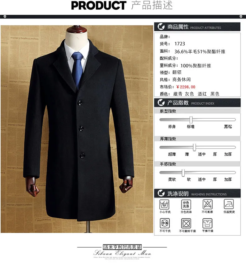 Outerwear Type: Wool & Blends;Gender: Men;Sleeve Length(cm): Full;Thickness: Standard;Style: Casual;Lining Material: Polyester;Model Number: 195;C…