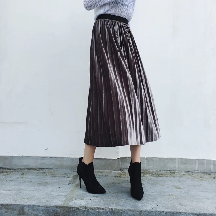 2017 New Autumn And Winter High Waisted Skinny Female Velvet Skirt Pleated Skirts Pleated Skirt Free Shipping