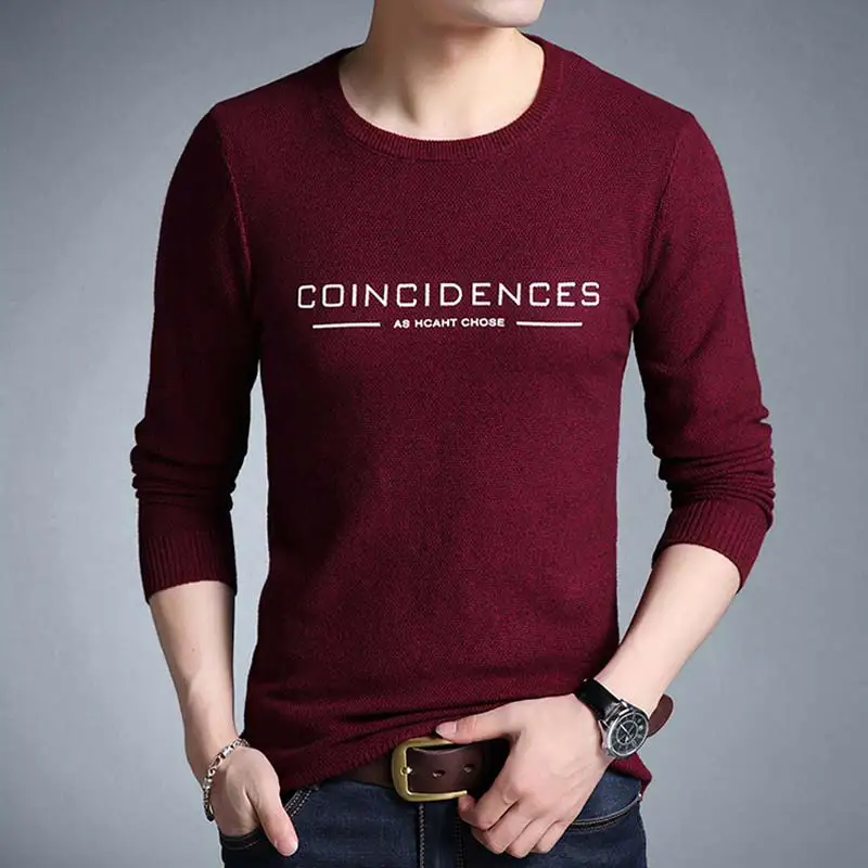 2017 New Autumn Winter Men'S Sweater Men'S Round Neck Letter Printed Casual Sweater Men's Slim Fit Brand Knitted Pullovers HJK43
