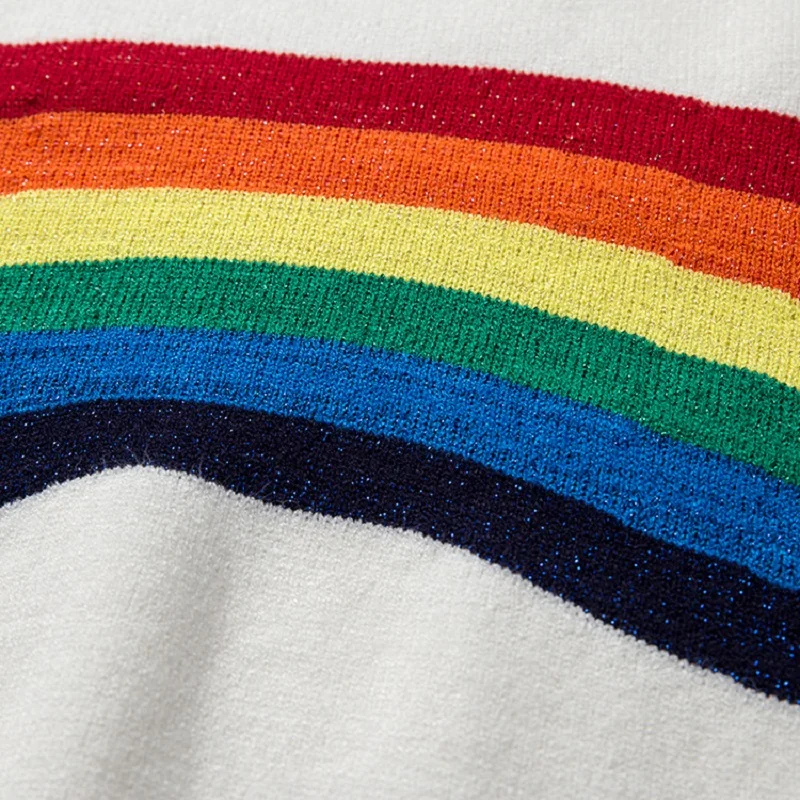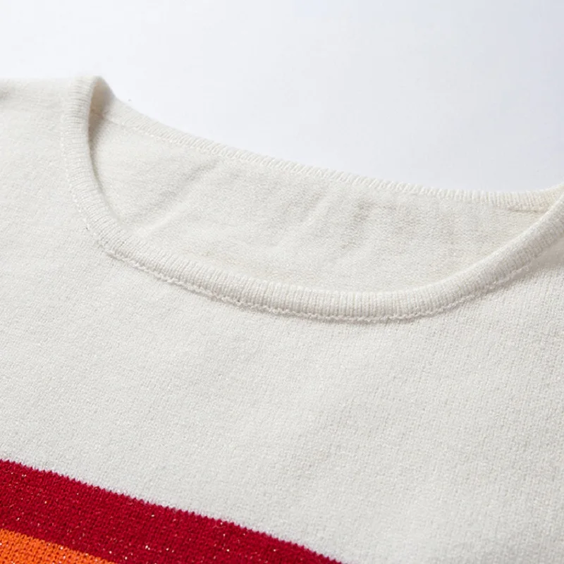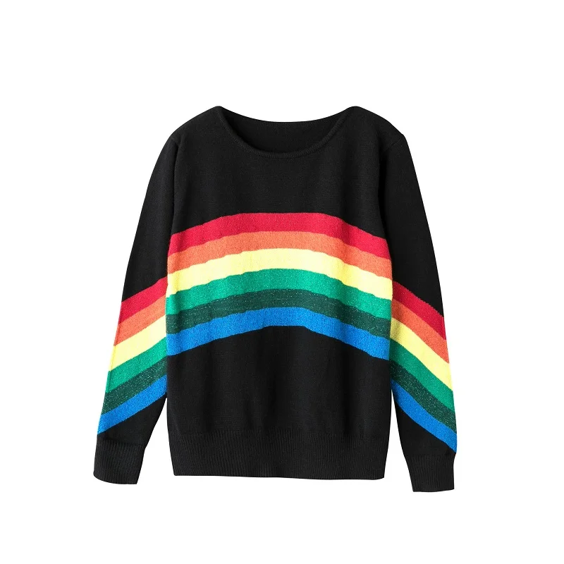 2017 New Autumn Women Rainbow Sweater Color Striped Women'S Knitted Sweater Loose O-Neck Pullover