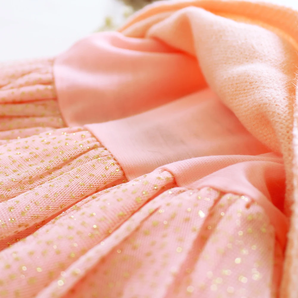 2017 New Fuzzy Sequins Newborn Girl Dress Baby Girls Long Sleeve Knitted Bow Infants Tutu Princess Dress