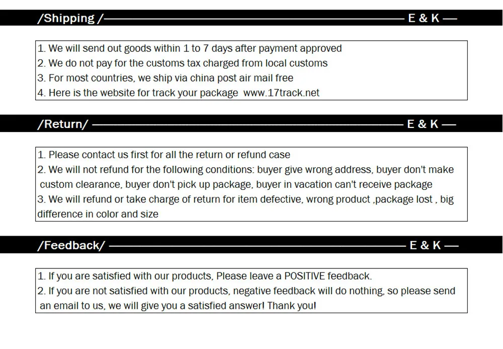 Note: We sell ASIAN size , it is about 1-2 size SMALLER than US , AU, EU size . Please choose the size according to our size form .