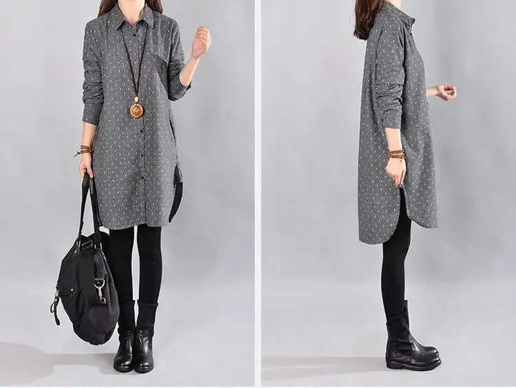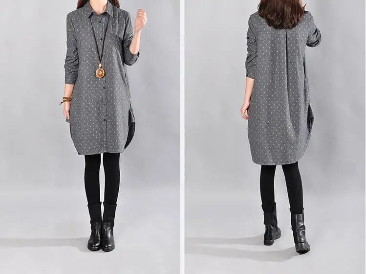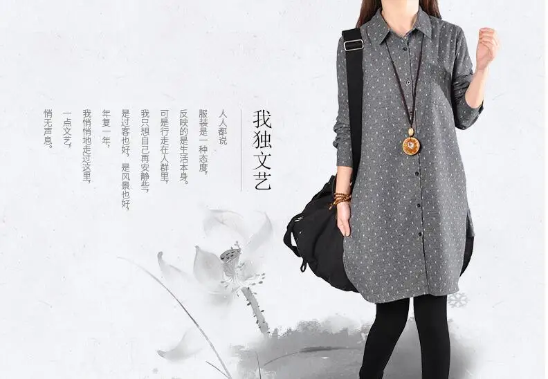 2017 New Spring Autumn Women dress Ladies Casual Cotton Linen shirtdress Fashion Plus Size Vestidos Robe