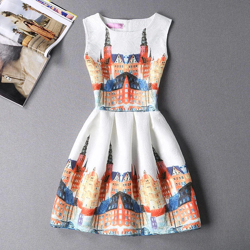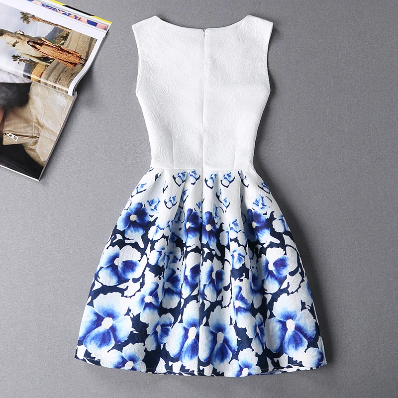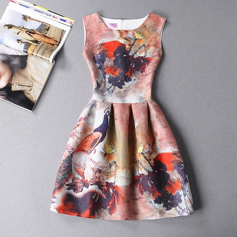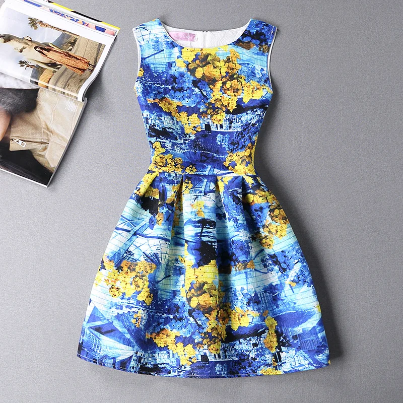 2017 New Summer Casual Dresses Women Sleeveless Vest Dress Lady Floral Print O Neck A Line Party Short Slim Dress Vestidos