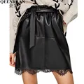 2017 Spring Autumn High Waist Knitted Skirts Women Pleated mini Skirt Casual Elastic Flared Skirt Female midi Short Skirt Woman