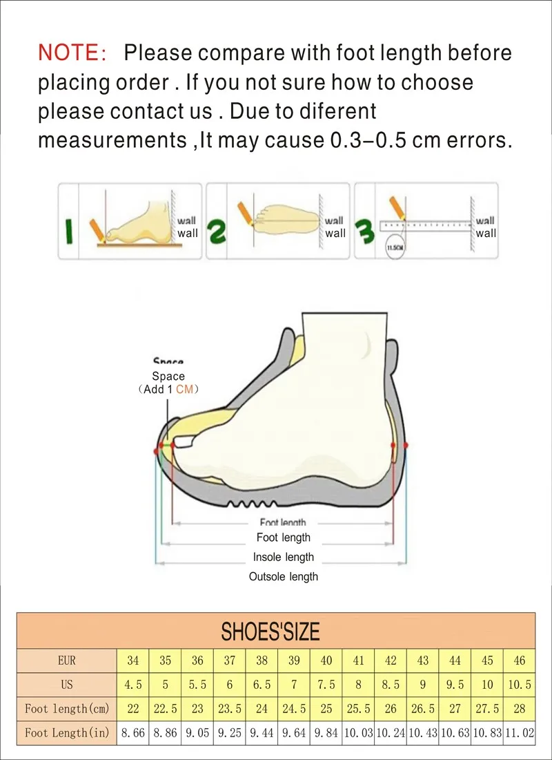 NOTE: We are EUR size ,US size is only for reference and placing order in Aliexpress .So please check the size table carefully before placing order! Please choose the size according to your feet length .