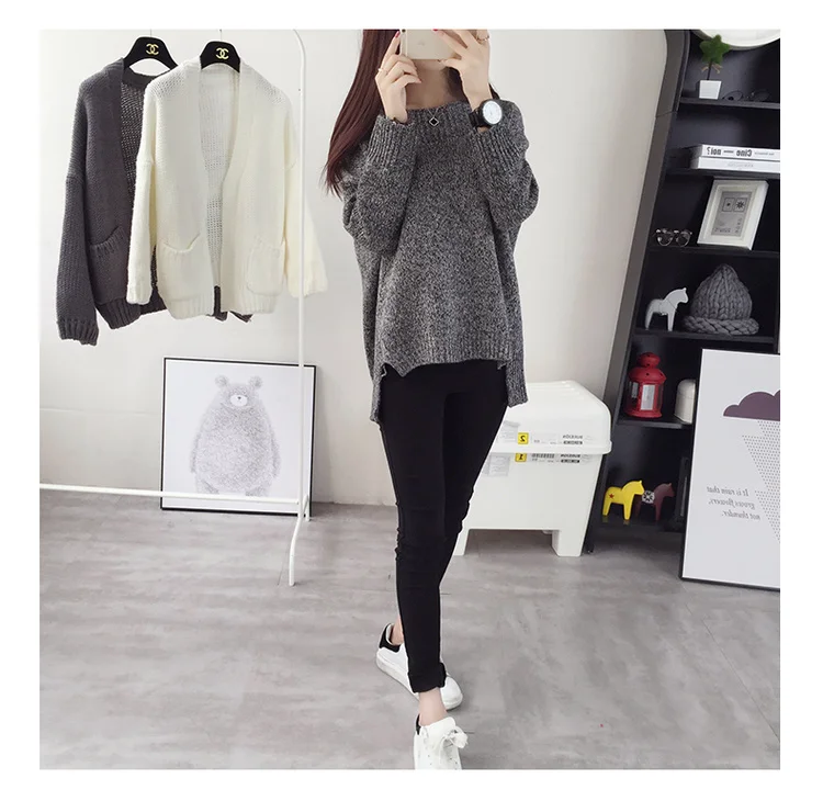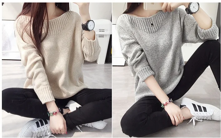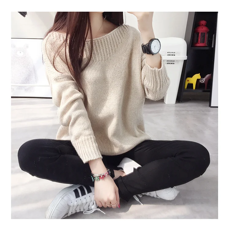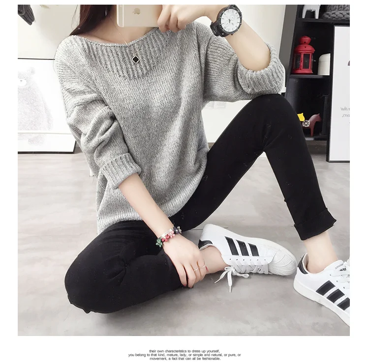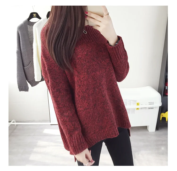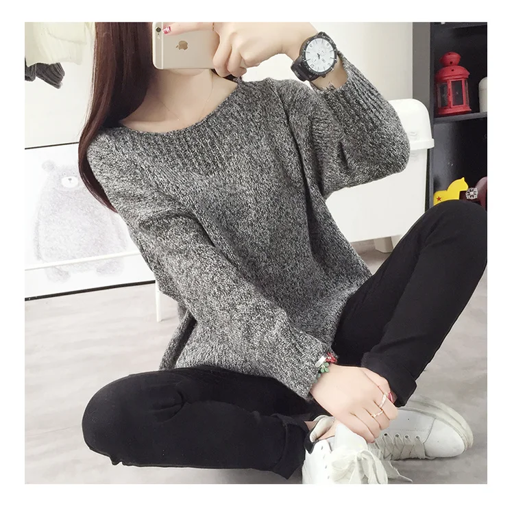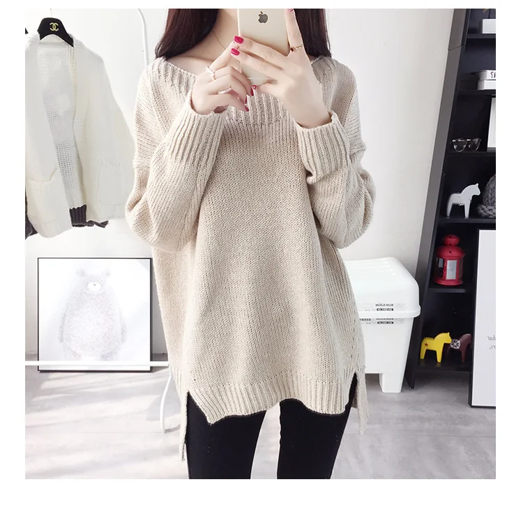 2017 Spring Autumn Winter New O-Neck Long Sleeve Solid Color Knitted Warm Sweater Female Pullovers Loose Sweater Women's Sweater