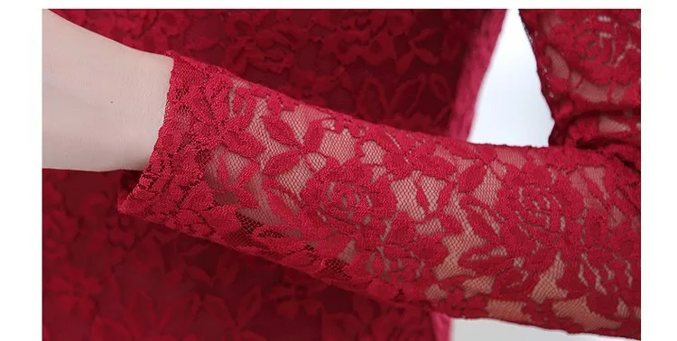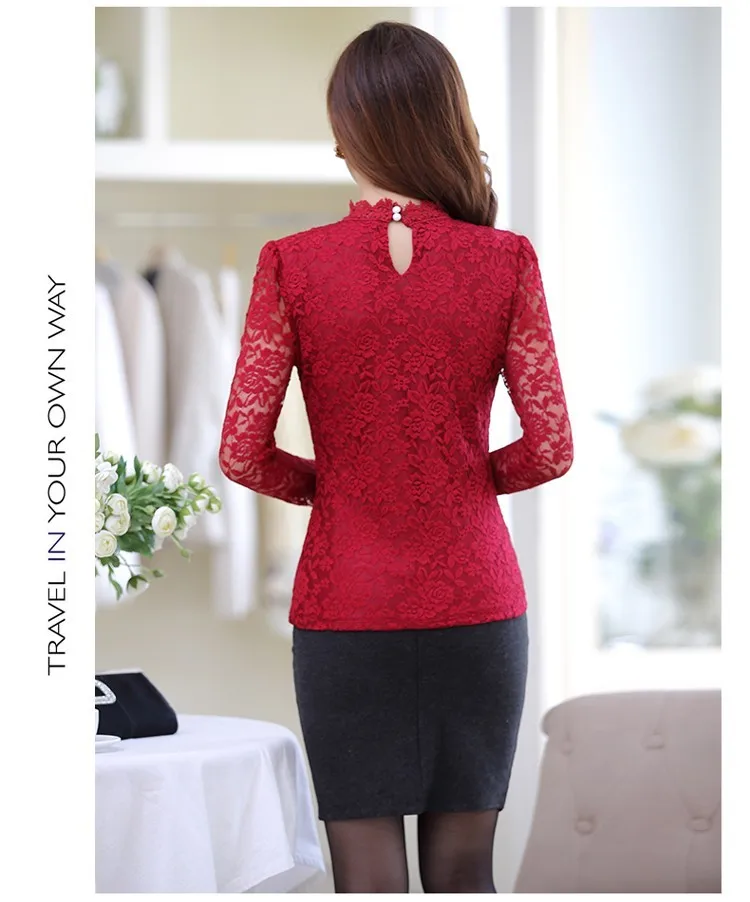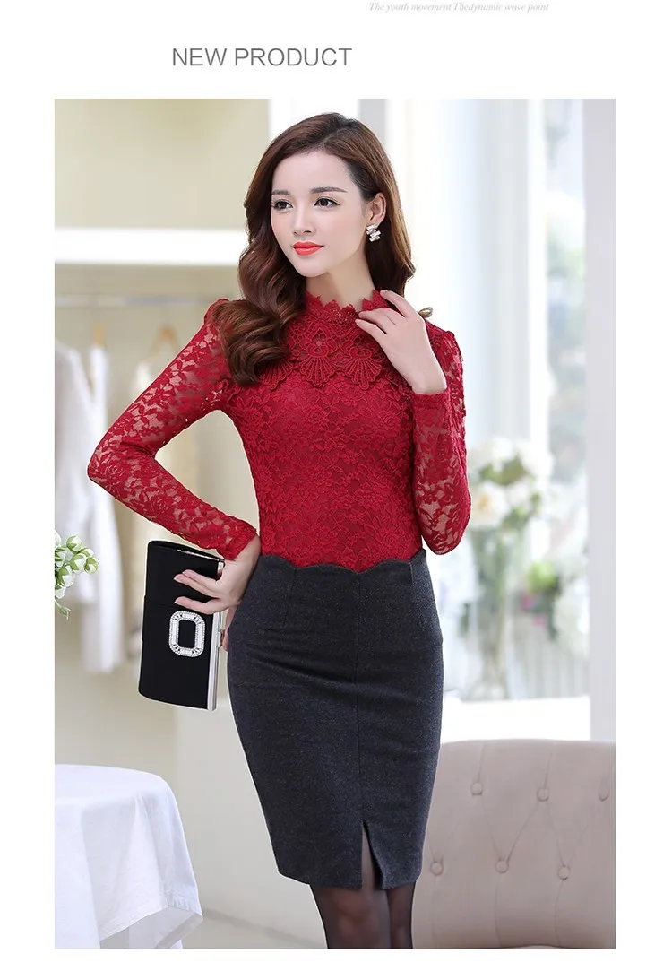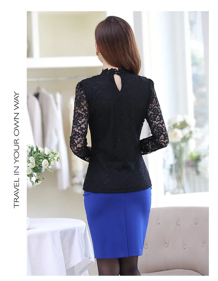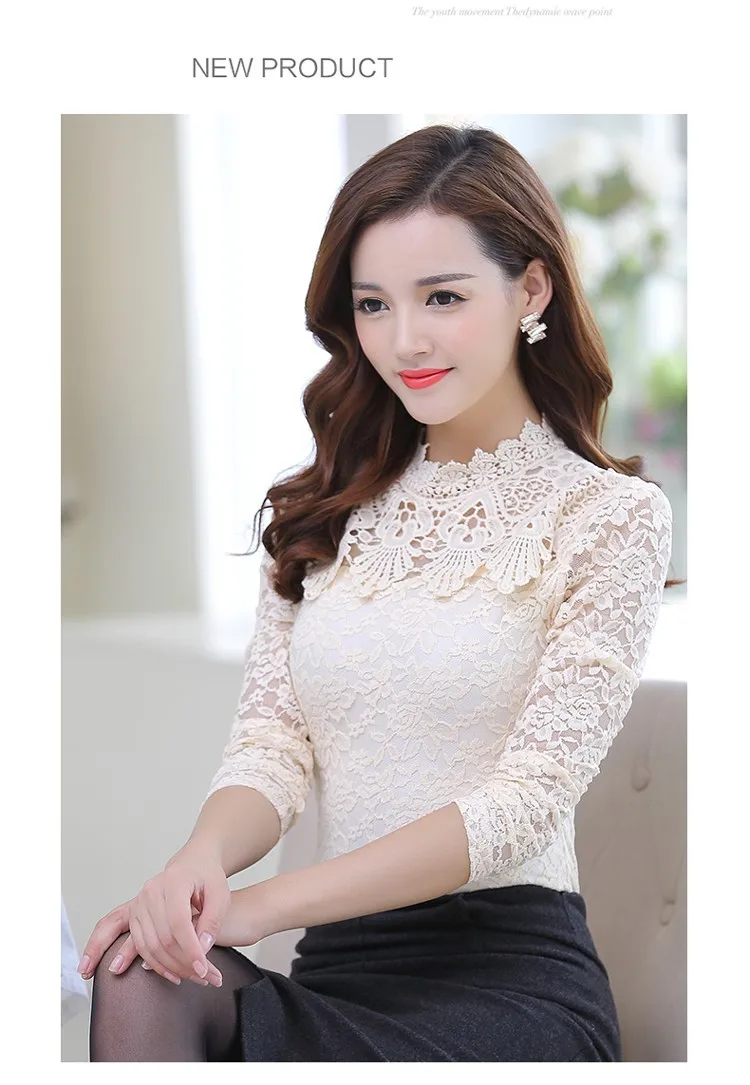 2016 Autumn Winter Women Tops Fashion Lace Blouse Long Sleeve Slim Body Crochet Floral Lace Shirt Elegant Plus Size Lace Top