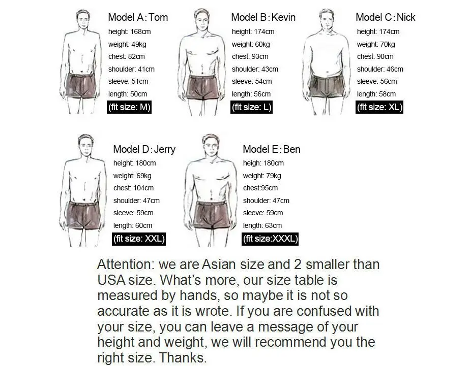 | Size | Asian Size M,L,XL,XXL,XXXL | |