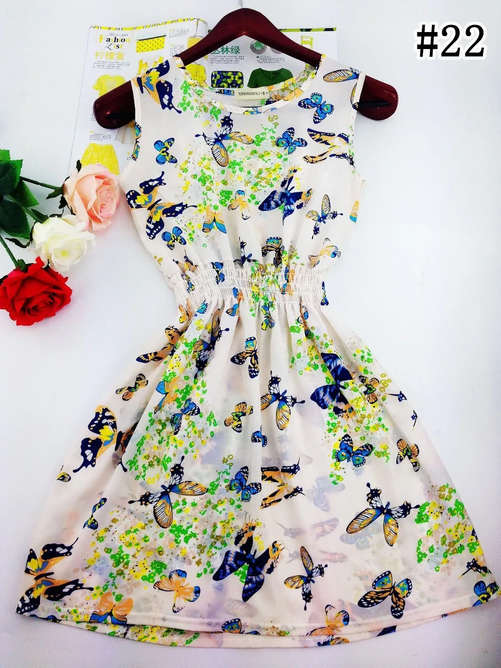 2017 summer autumn new Korean Women casual Bohemian floral leopard sleeveless vest printed beach chiffon dress vestidos WC0344