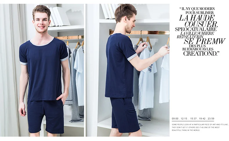 Item Type: Pajamas;Gender: Men;Pattern Type: Solid;Collar: O-Neck;Sleeve Length(cm): Short;Closure Type: Button;Model Number: DM-JJF-1601;Material: Co…