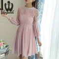 2017 Summer openwork Lace Dress Knee length Vestidos Short sleeve Women dress Fashion Floral Casual dress