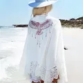 2017 Summer Sexy Beach Dress With Tassels Pareo Beachwear Tunic White Chiffon Sarong Swimsuit Dress Swimwear