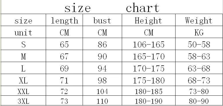 1. Use similar clothing to compare with our size chart to help you make the right decision