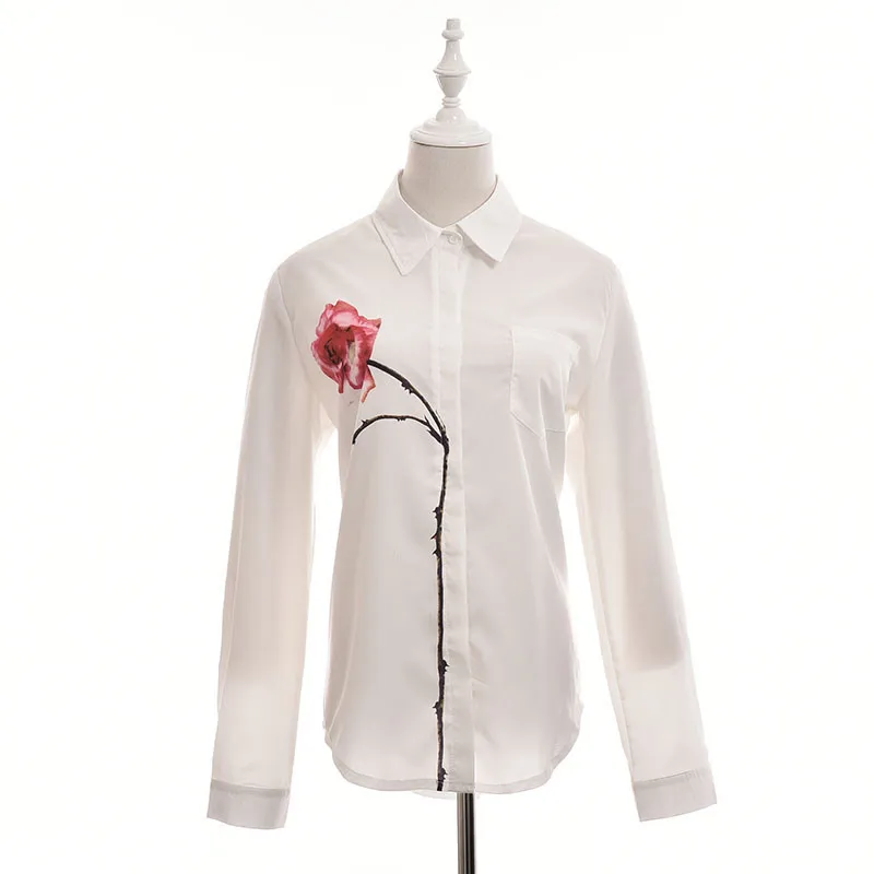 2017 Autumn Women Blouses Rose Flower Print Long Sleeve Tops Shirt Turn Down Collar Chiffon Shirts Plus Size Blouse Blusas