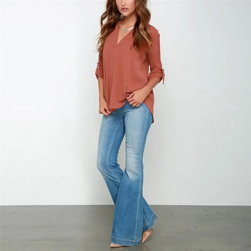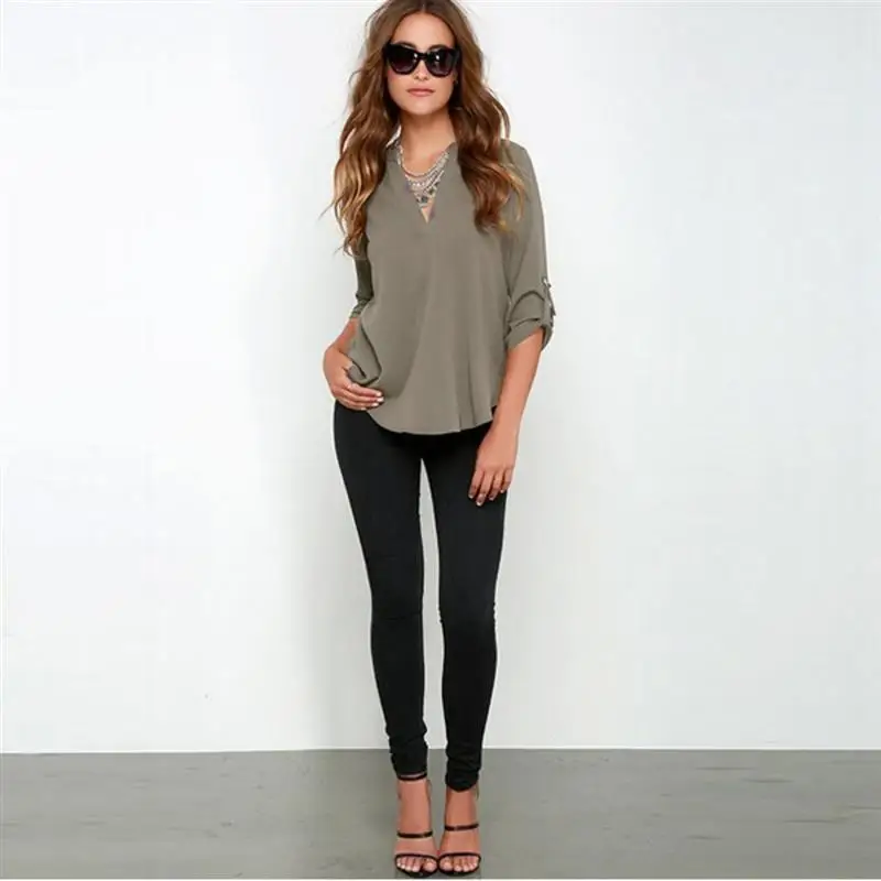 Blusas Femininas 2017 New Women V Neck Solid Chiffon Blouse Sexy lady Long Sleeve Blusa Fashion Blouses Shirt 5 Colors Tops