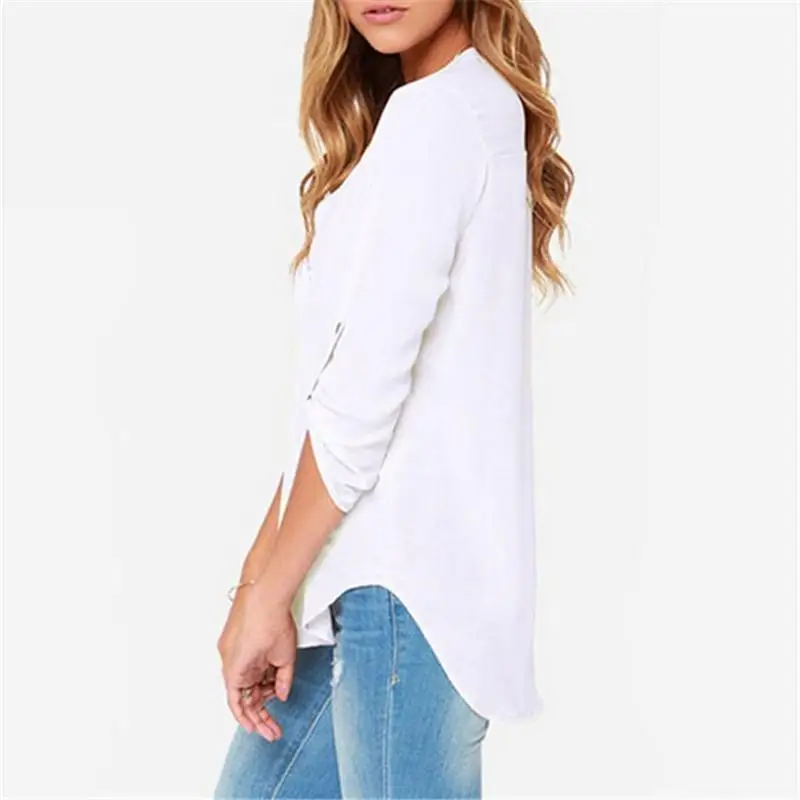 2018 Blusas Femininas New Women V Neck Solid White Chiffon Blouse Sexy lady Long Sleeve Blusa Fashion Blouses Shirt Black Tops