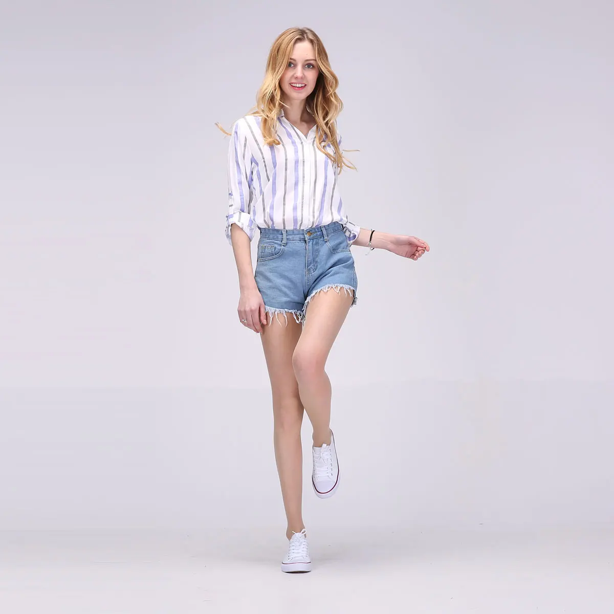 2018 Hot New Women Full Sleeve Blouses Striped Shirts Women Summer Tops White Dot Blouse Women Button Chemise Femme Plus Size